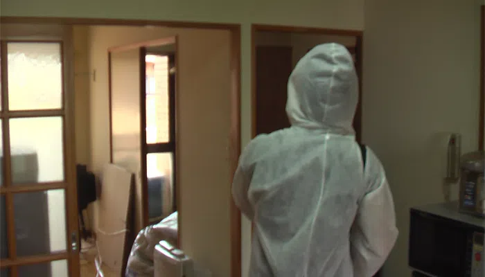 遺品整理と特殊清掃が終わったら「脱臭作業」に入ります。脱臭はオゾン脱臭と手作業で溶剤を散布しながら施工していくのですがオゾンを出しっぱなしにしていても効果はありません。オゾンを出したら回収して時折空気の入れ替えを行いながら手作業で臭いの強いところに溶剤を散布して、またオゾンを出してという繰り返しの作業が必要になります。